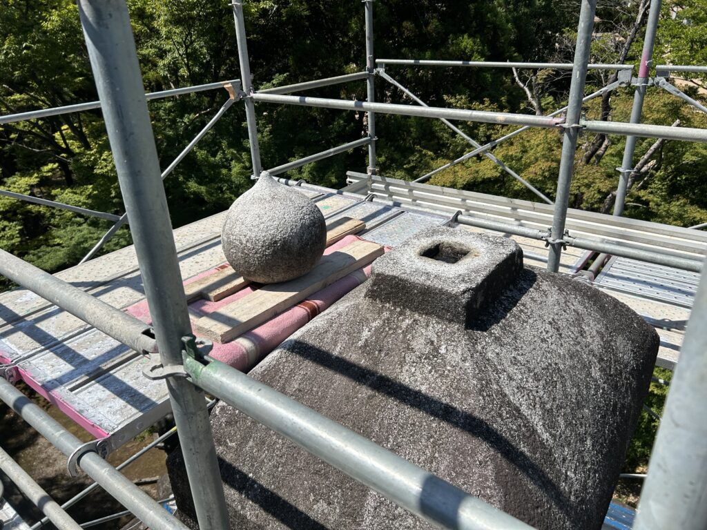 前田利長公墓所 内郭 宝珠・灯篭据え直し