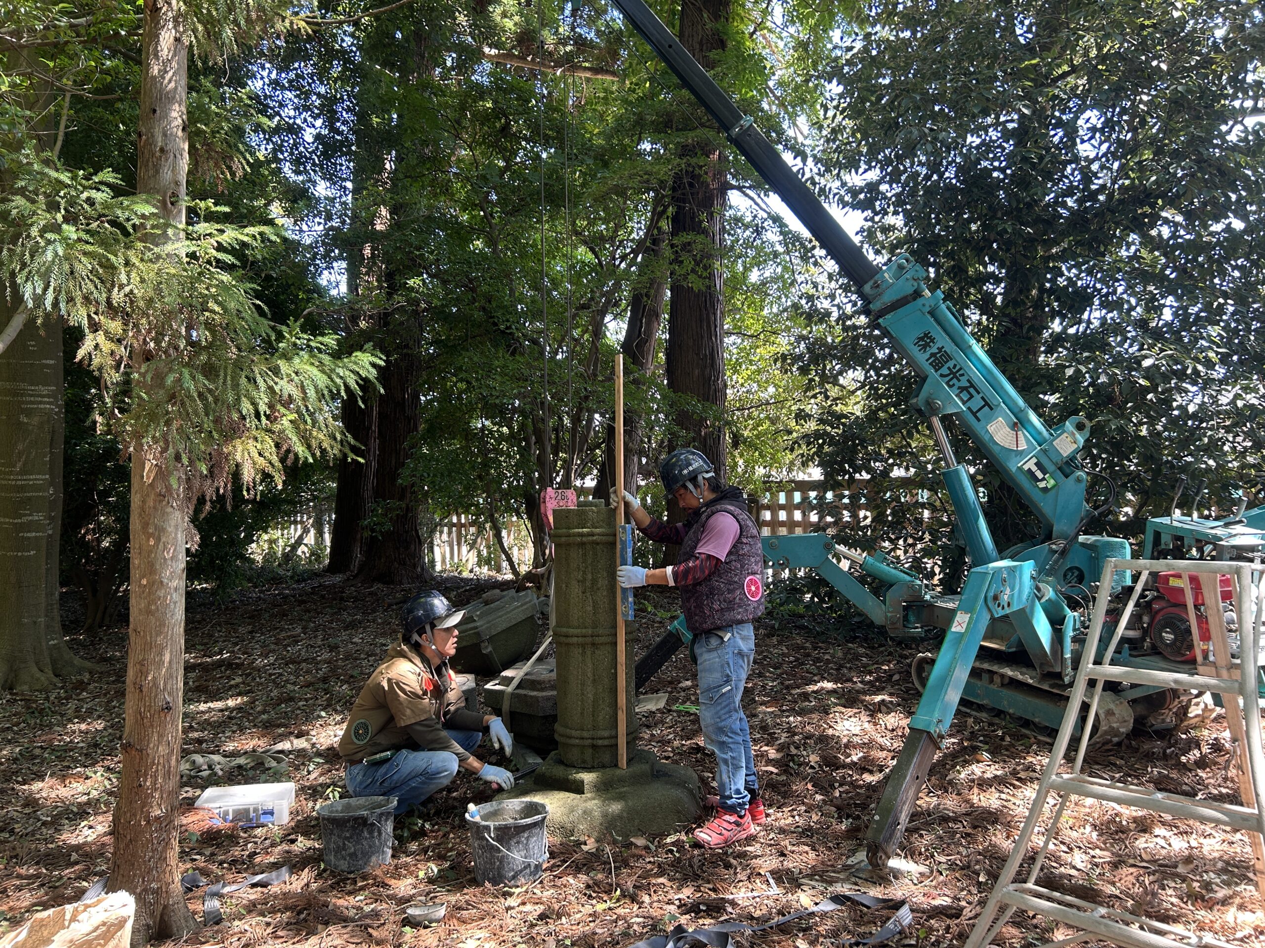 墓石宝珠 及び周りの灯篭据え直し工事