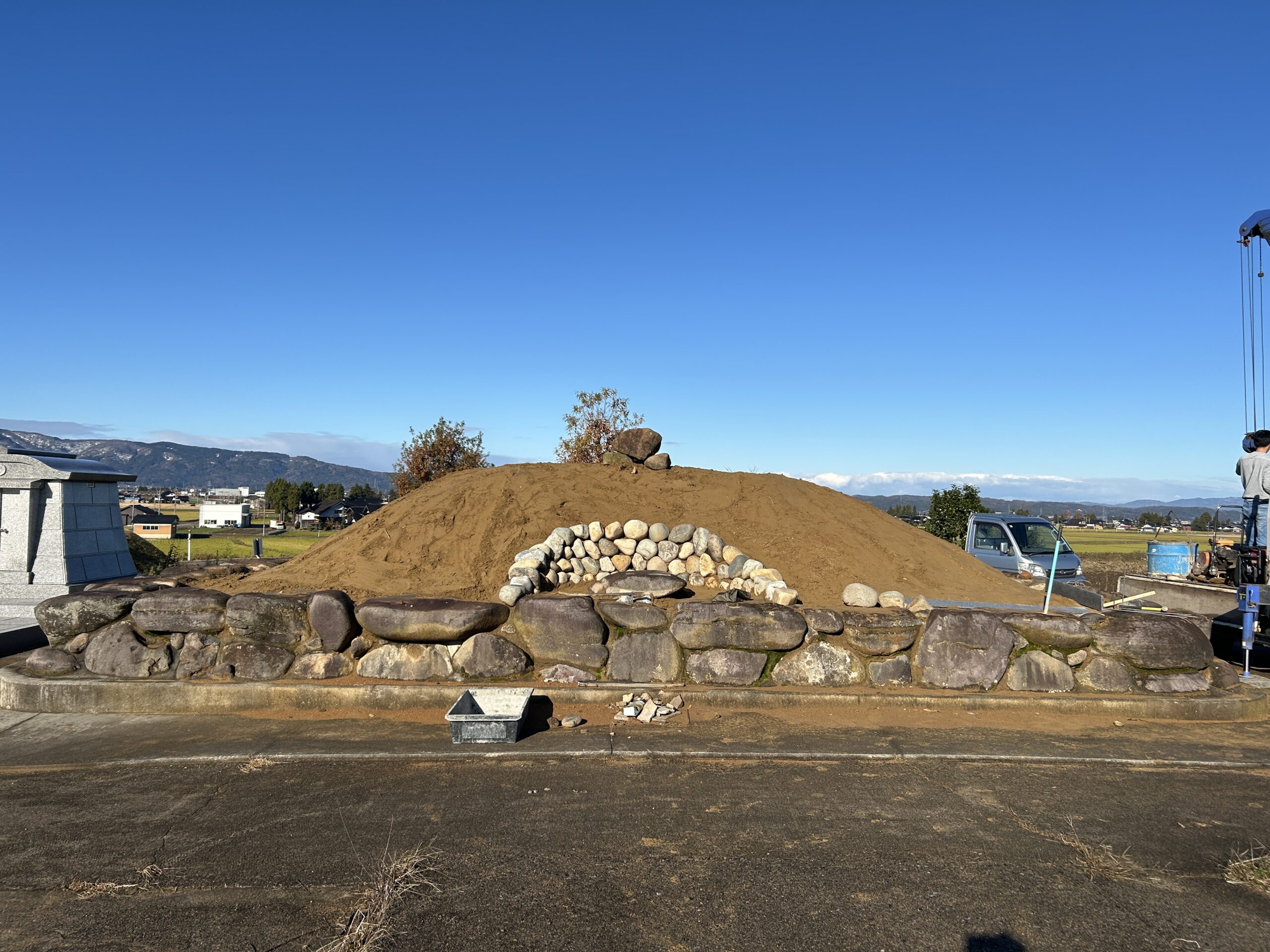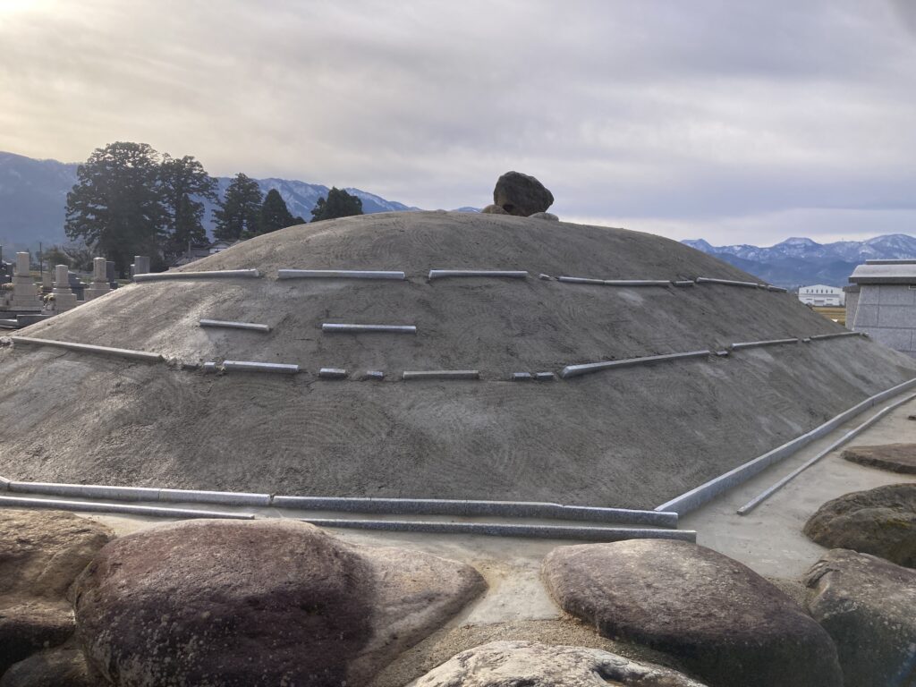 墓石周り土盛りから草抑えCON・砂利敷き仕上げ