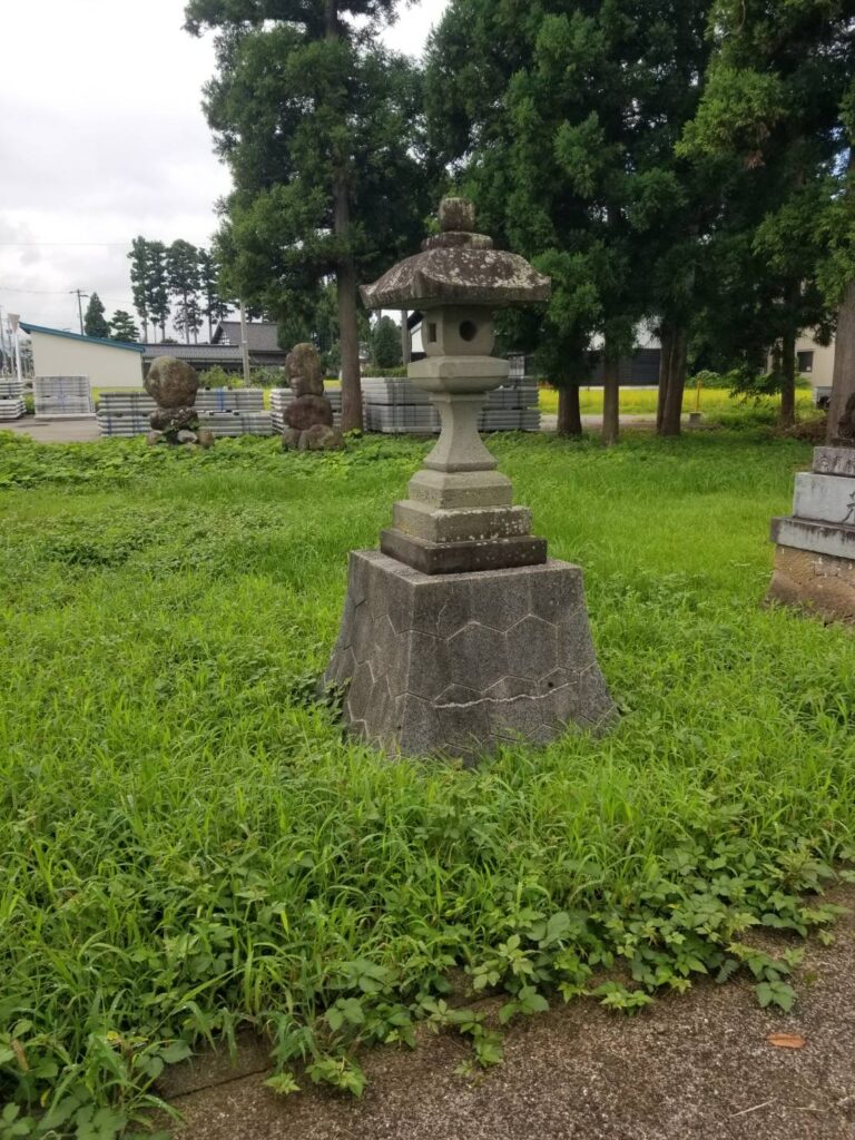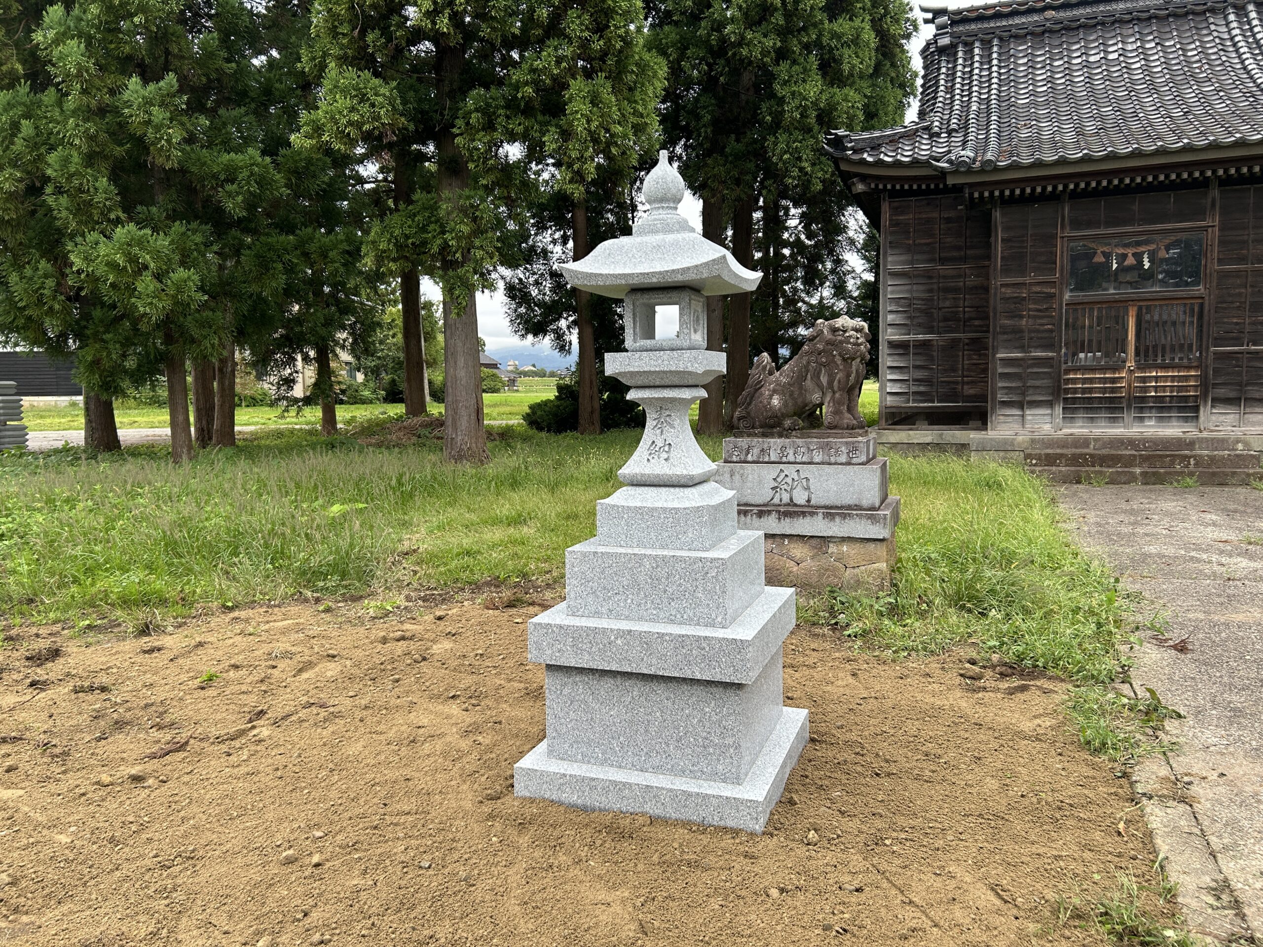 富山県南砺市内。元灯篭が軟石劣化の為、御影石にて神前燈篭を新設。基礎コンクリートよりやり替え。