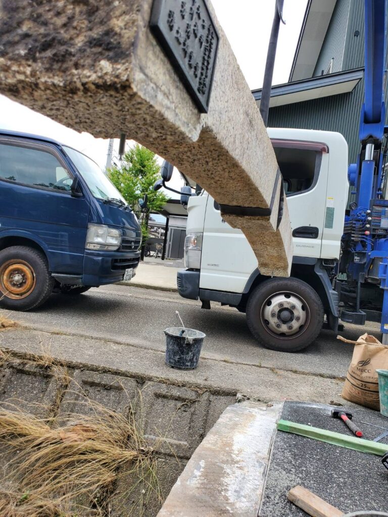 富山県南砺市内。欄干石の接着が剥がれ倒壊の恐れがありました。