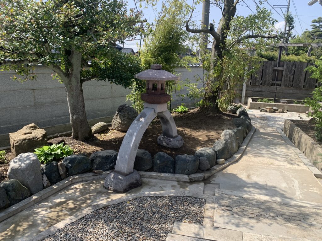 お庭に琴柱灯篭新設据え付け。琴柱灯篭は自社にて加工製造。