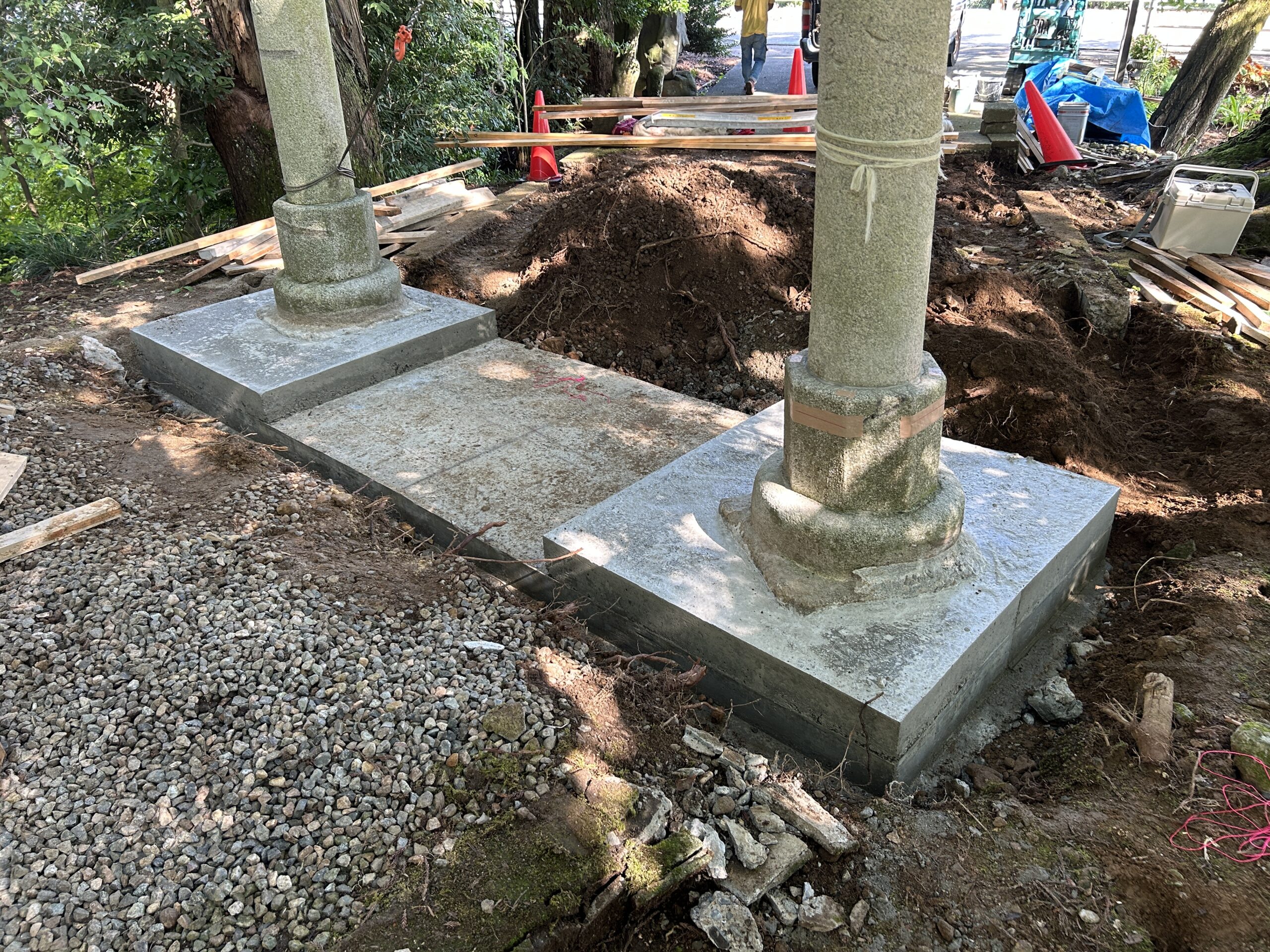 移転箇所に基礎コンクリートを打設した上に鳥居を移設。周りも現状に合わせ復旧工事。