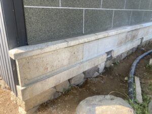ブロック塀が劣化してきたため、塀の段数を減らして 天端に水が溜まらないようにモルタル塗り仕上げ 工事内容 ブロック塀撤去、天端モルタル仕上げ 石種 仕上げ 製作期間 1日程度