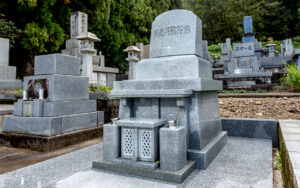汚れがつきにくく、お手入れがしやすくなっています。白と黒の明暗が特徴的なデザインです。 右手前にあるのは腰掛になっており、蝋燭等の小物を置くなどして利用もできます。 型 洋型 石種 (墓石上部)インド産インド黒 (他墓石 […]
